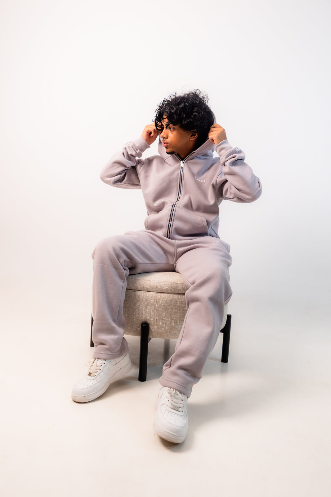 £40.00Grey Minimalist Puff-Print Zip-Up Hoodie